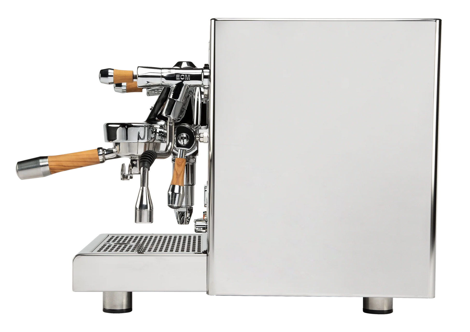 - High-quality ECM brewing group with innovative stainless-steel bell